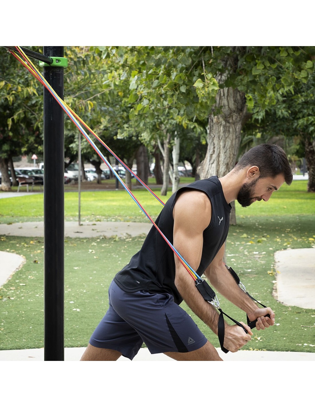 Satz regulierbaren Stretchbändern mit Accessoires und Übungsleitfaden Rebainer InnovaGoods 5 Stück