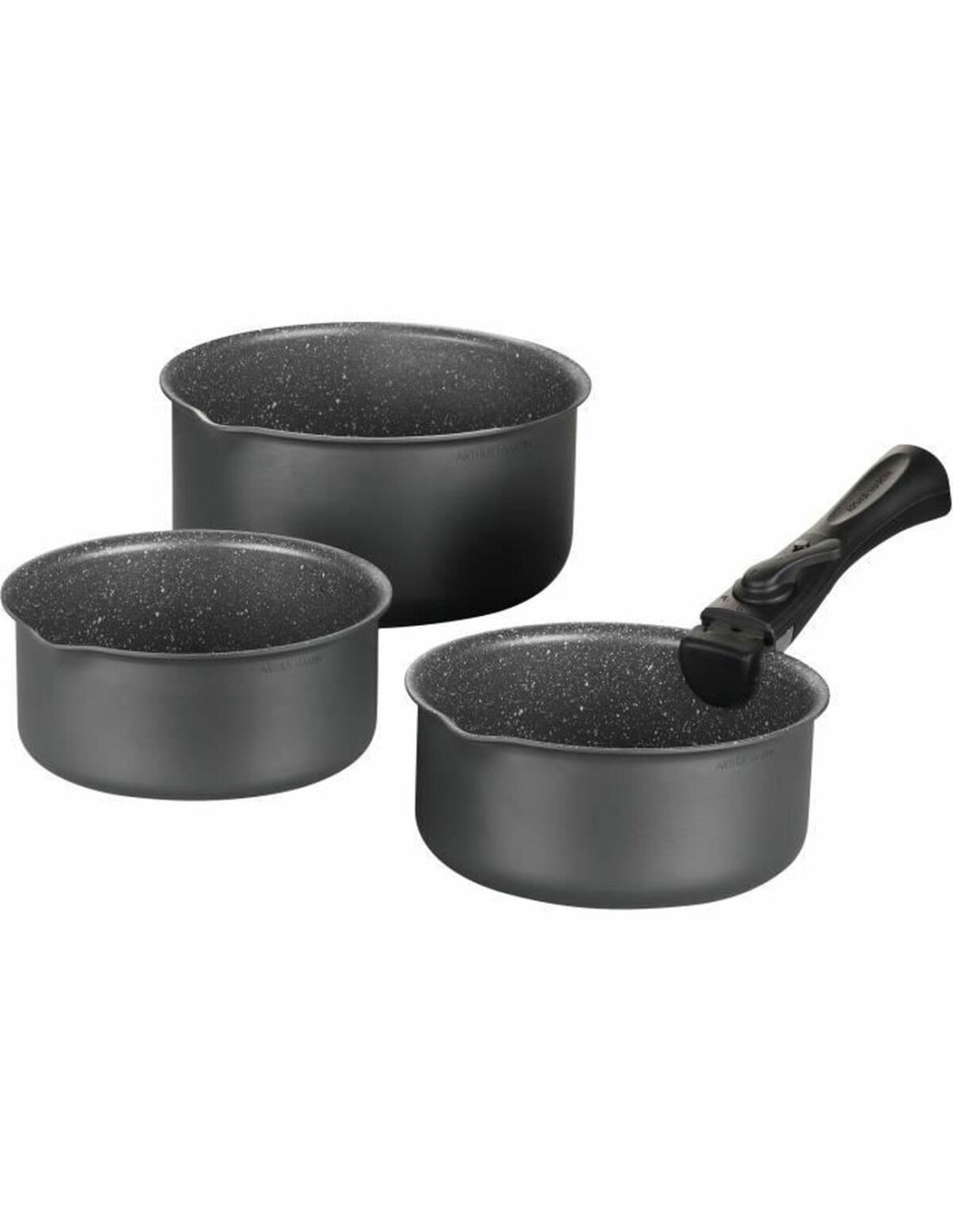 Das Kochgeschirr Arthur Martin AM777GM ist ein vielseitiges und funktionales Set, das die häufigsten Kochbedürfnisse abdeckt. Es besteht aus 4 Teilen, darunter drei Aluminium-Pfannen mit Antihaftbeschichtung und einem innovativen abnehmbaren Griff. Jede Pfanne hat einen ungefähren Durchmesser von Ø 16 cm, Ø 18 cm und Ø 20 cm, ideale Größen für kleine Portionen bis hin zu aufwendigeren Gerichten. Dank des Aluminium-Materials, bekannt für seine ausgezeichnete Wärmeleitung, wird die Hitze gleichmäßig verteilt. Die mattgraue Oberfläche verleiht ein schlichtes, modernes Design, das sich in jede Küche einfügt. Zudem ist das Set mit allen Herdarten kompatibel, einschließlich solcher mit Induktion, was seine Funktionalität und Anpassungsfähigkeit erhöht. Der abnehmbare Griff verbessert die Ergonomie, ermöglicht die Nutzung der Pfannen im Ofen und erleichtert die platzsparende Aufbewahrung. So erleichtert dieses Set nicht nur die Zubereitung vielfältiger Rezepte, sondern auch die schnelle und einfache Reinigung dank der Antihaftbeschichtung, die das Anhaften von Speisen verhindert und den Fettverbrauch reduziert. Insgesamt bietet das Kochgeschirr Arthur Martin AM777GM eine praktische und effiziente Lösung für Haushalte, die Wert auf Qualität, Langlebigkeit und Vielseitigkeit legen.