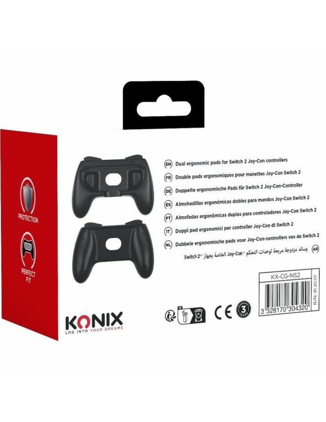 Konix 61889000081. Tipo de producto: Funda antideslizante para mando, Color del producto: Negro, Gris, Marca compatible: Nintendo. Cantidad por paquete: 2 pieza(s), Tipo de embalaje: Envase para colgar