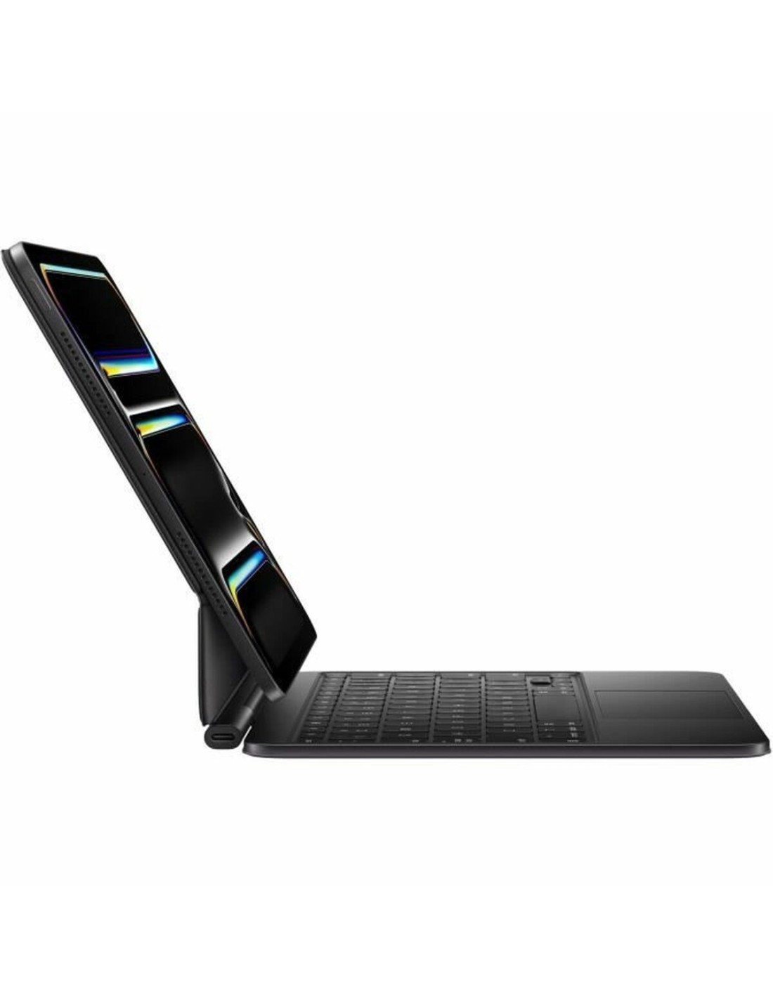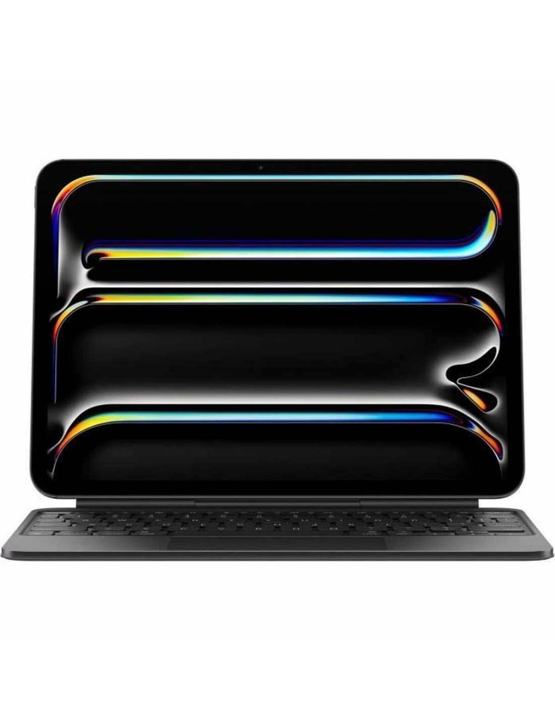 El Magic Keyboard para iPad Pro 11 de Apple es una funda para tablet diseñada para ofrecer una experiencia de escritura y uso del iPad Pro excepcionalmente cómoda y funcional. Su estructura de aluminio negro proporciona una construcción robusta y duradera, que además confiere un acabado elegante y sofisticado, propio de la marca. Este teclado incorpora una fila completa de 14 teclas de función que facilitan el acceso directo a configuraciones esenciales como el brillo de la pantalla y el volumen, mejorando la productividad sin necesidad de salir de la aplicación en uso. Dispone de una innovadora barra táctil integrada y una gran superficie de trackpad con retroalimentación háptica que permite realizar gestos Multi-Touch intuitivos, perfectos para tareas precisas como la edición de hojas de cálculo o selección de textos, funcionando a modo de ratón tradicional. Su diseño flotante y ajustable ofrece varias posiciones de visualización para adaptar el iPad a la postura y entorno del usuario, incrementando así la ergonomía en sesiones prolongadas. Además, dispone de un puerto de carga USB-C independiente que permite cargar el iPad sin desconectar el teclado, aportando mayor comodidad. La combinación entre protección integral y funcionalidad convierte a esta funda en un accesorio imprescindible para profesionales y creativos que buscan aprovechar al máximo su iPad Pro 11. En resumen, el Magic Keyboard representa una solución avanzada que integra teclado, trackpad y soporte en un solo accesorio diseñado para la máxima eficiencia y durabilidad.