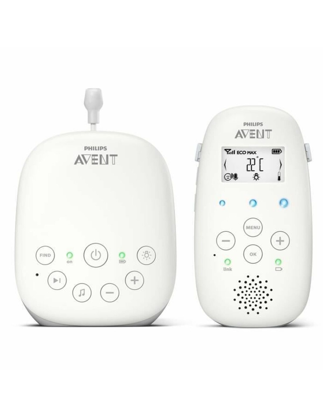 Le vigilabébés Philips SCD713/26 est un appareil conçu pour offrir tranquillité d’esprit et sécurité aux parents grâce à un système de surveillance audio fiable et pratique. Ce vigilabébés utilise la technologie DECT, garantissant une communication claire et sans interférences, tout en préservant la confidentialité. Son unité réceptrice dispose d’un écran LCD qui, bien que principalement orienté audio, facilite la lecture des informations clés. Il est équipé d’un capteur de température permettant de contrôler en temps réel l’ambiance de la chambre du bébé, aidant à maintenir des conditions optimales pour son sommeil. De plus, il intègre une veilleuse douce et tamisée, idéale pour surveiller le bébé sans perturber son repos. La portée sans fil allant jusqu’à 300 mètres assure une grande liberté de mouvement dans la maison, permettant aux parents de se déplacer dans différentes pièces sans perdre le contact avec le bébé, tandis que son design en blanc offre un aspect propre et discret qui s’intègre facilement à tout environnement. Ce modèle Philips Avent offre un bon équilibre entre fonctionnalité et simplicité d’utilisation, devenant un accessoire pratique pour le soin quotidien et la surveillance constante du bébé durant ses premiers mois. Ainsi, le Philips SCD713/26 constitue une solution technique fiable et accessible pour les parents recherchant un système de surveillance audio avec des fonctions supplémentaires utiles, telles que le contrôle de l’environnement et la veilleuse intégrée.