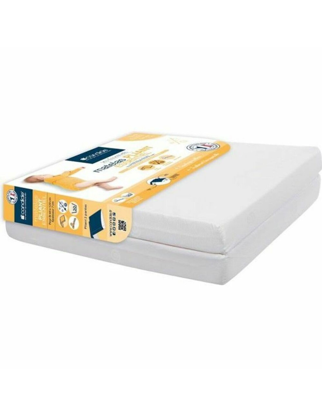 Le matelas pour lit bébé Ecru de la marque Candide est un produit conçu spécifiquement pour offrir confort et praticité au repos du bébé. Il s’agit d’un matelas individuel aux dimensions approximatives de 60 x 120 cm, idéales pour s’adapter à la plupart des lits bébé standards, facilitant son ajustement et offrant une surface adaptée pour un sommeil sûr de l’enfant. Ce matelas possède une structure en mousse d’une densité de 16 kg/m³, qui assure un équilibre entre fermeté et douceur, essentiel pour un bon soutien durant le sommeil infantile. Son design comprend une housse amovible, confectionnée en couleur blanc écru (ecru), qui peut être retirée et lavée facilement, garantissant ainsi l’hygiène du matelas. De plus, il dispose d’un fond en PVC, ce qui contribue à protéger la base du matelas et facilite son nettoyage, évitant l’accumulation d’humidité ou de saleté. Un autre point fort est son format pliable en deux parties, le rendant très pratique pour le transport et le rangement, notamment pour les familles mobiles ou disposant de peu d’espace, complété par une anse de transport confortable. Tout cela fait de ce produit une option fonctionnelle et durable pour ceux qui recherchent un matelas sûr et facile d’entretien pour le lit bébé. En résumé, le matelas pour lit bébé Ecru de Candide offre une combinaison équilibrée de design, qualité et confort adaptée aux besoins spécifiques du sommeil infantile.