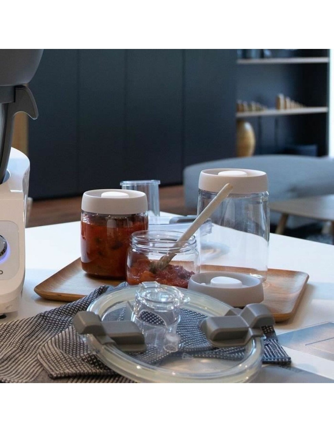 Le set de 3 bocaux sous vide Livoo est un ensemble conçu pour conserver les aliments efficacement grâce à la technologie de l’emballage sous vide, permettant de maintenir fraîcheur, saveur et propriétés nutritionnelles plus longtemps. Ce kit comprend trois bocaux individuels facilitant le stockage hermétique de différents types d’aliments, évitant l’entrée d’air et la prolifération bactérienne. Chaque bocal est conçu pour fonctionner avec des systèmes d’emballage sous vide, permettant l’extraction de l’air intérieur via une machine compatible, ce qui prolonge la durée de vie du contenu et préserve la qualité des aliments secs, humides ou liquides. De plus, le design du produit est adapté à un usage domestique en Europe, incluant une prise EU assurant la compatibilité électrique avec les normes courantes, garantissant une connexion sûre et pratique. La robustesse et l’étanchéité des bocaux facilitent leur usage quotidien, conservant les aliments frais dans les cuisines privées ou même dans de petites cuisines commerciales, où la conservation est essentielle pour éviter le gaspillage. Bien que le matériau ne soit pas précisé, la structure générale et le système sous vide assurent une conservation optimale comparée aux méthodes traditionnelles. Ce set de trois récipients sous vide Livoo est une solution pratique et efficace pour ceux qui souhaitent préserver la qualité de leurs aliments à domicile, optimisant l’espace et maintenant la fraîcheur avec une technologie simple et fonctionnelle.
