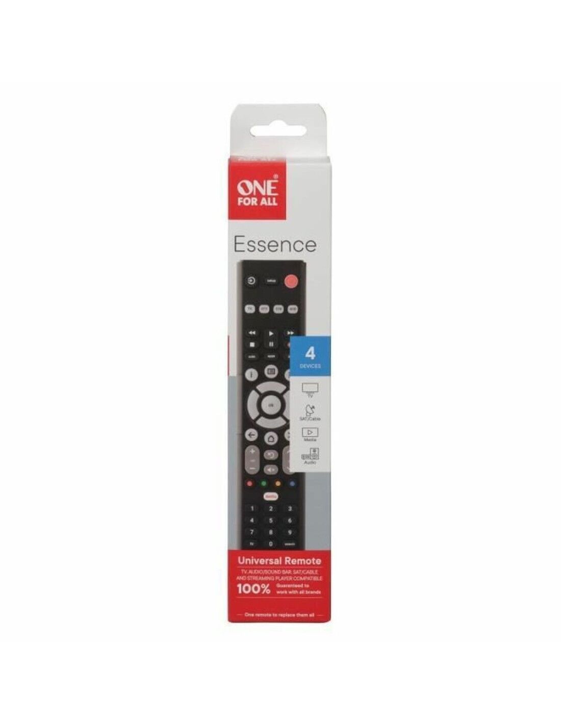 Il URC1242 di One For All è un telecomando universale progettato per controllare più dispositivi da un unico apparecchio, facilitando la gestione dei sistemi audiovisivi domestici. Questo telecomando, di colore nero, offre una soluzione pratica ed efficace per sostituire diversi telecomandi sparsi, grazie alla sua compatibilità con vari marchi e tipi di dispositivi, semplificando l’uso quotidiano. Il suo design intuitivo e funzionale consente una configurazione semplice, permettendo il controllo simultaneo di fino a quattro apparecchi diversi, rendendolo uno strumento versatile per chi desidera centralizzare la gestione di TV, lettori DVD, impianti audio e altri dispositivi elettronici compatibili. Inoltre, è realizzato con materiali resistenti, garantendo durata e una presa confortevole durante l’uso abituale. Il telecomando include funzioni base ed essenziali che assicurano un’esperienza utente efficiente senza complicazioni tecniche, adattandosi alle esigenze standard di controllo remoto. In sintesi, l’URC1242 rappresenta un’opzione affidabile e pratica nel segmento dei telecomandi universali, offrendo una soluzione chiara per la gestione unificata di diversi dispositivi nell’ambiente domestico.