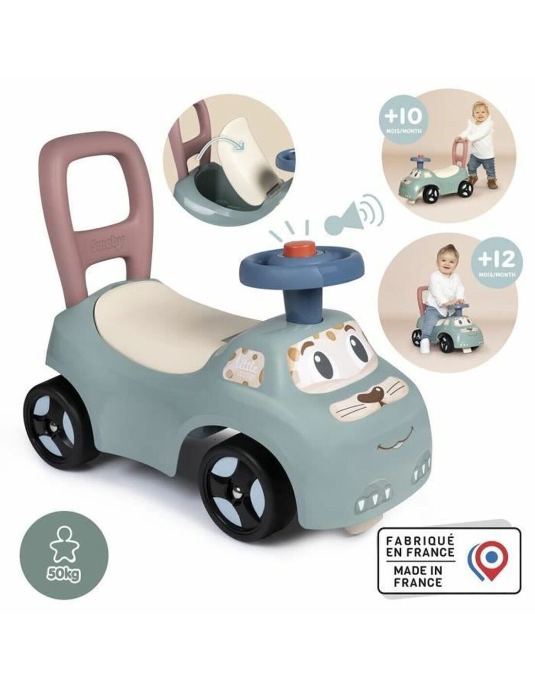 De Smoby loopauto is een speelgoed ontworpen voor kinderen vanaf 3 jaar, dat functionaliteit en veiligheid combineert in een kwaliteitsproduct. Gemaakt van stevig kunststof, valt deze loopauto op door zijn lichte en duurzame constructie met een aantrekkelijk ontwerp in de kleuren wit en groen, wat visueel prettig is en geschikt voor verschillende kindervoorkeuren. Hij heeft een comfortabel zitje met een bak onder het zadel, ideaal om kleine voorwerpen of speelgoed in op te bergen, wat organisatie en actief spel stimuleert. De ergonomische en veilige opzet van de onderdelen maakt het voor de kleintjes makkelijk om hun motorische vaardigheden en evenwicht te ontwikkelen terwijl ze zich verplaatsen met een voertuig dat is aangepast aan hun behoeften. Het robuuste en veilige ontwerp zorgt ervoor dat kinderen het zonder risico kunnen gebruiken, wat de fysieke ontwikkeling in de peuter- en kleuterfase ondersteunt. Deze loopauto is een betrouwbare keuze binnen het assortiment van Smoby, een merk dat bekendstaat om kinderproducten die voldoen aan Europese kwaliteits- en veiligheidsnormen, en die ontwikkeld en geproduceerd zijn in Frankrijk. Al met al is de Smoby loopauto een praktische en veilige optie om kinderen te begeleiden bij hun eerste wieltjesritten, met een goede balans tussen plezier en comfort.